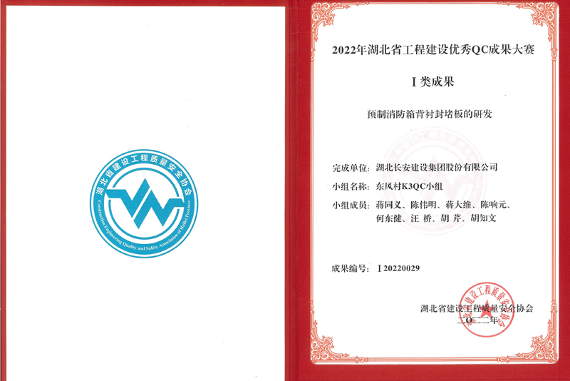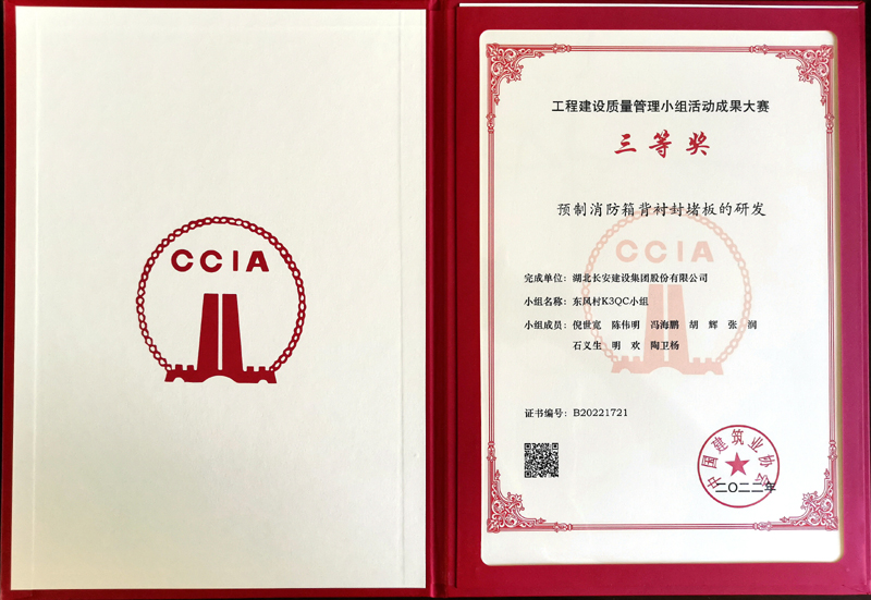 預(yù)制消防箱背襯封堵板的研發(fā)榮獲工程建設(shè)質(zhì)量管理小組活動成果大賽三等獎(國家級)