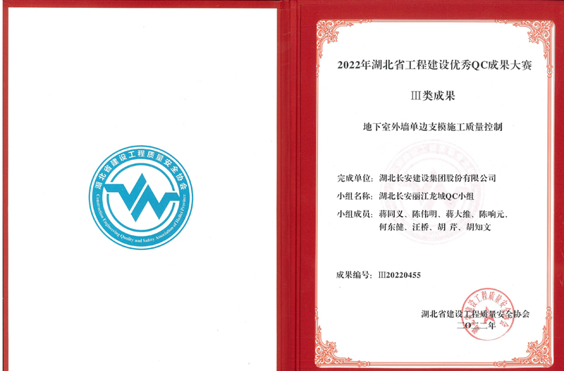 《電纜溝預(yù)制分層式電纜支架的研發(fā)》獲評湖北省工程建設(shè)優(yōu)秀QCⅢ類成果獎