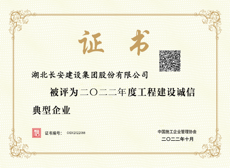 榮獲二O二二年度工程建設(shè)誠信典型企業(yè)稱號