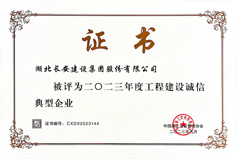 2023年度工程建設(shè)誠(chéng)信典型企業(yè)
