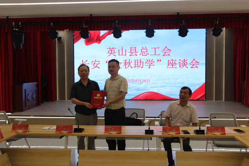 會上,英山縣總工會向受助貧困家庭學生發(fā)放了助學金,向湖北長安建設集團頒發(fā)了榮譽證書。